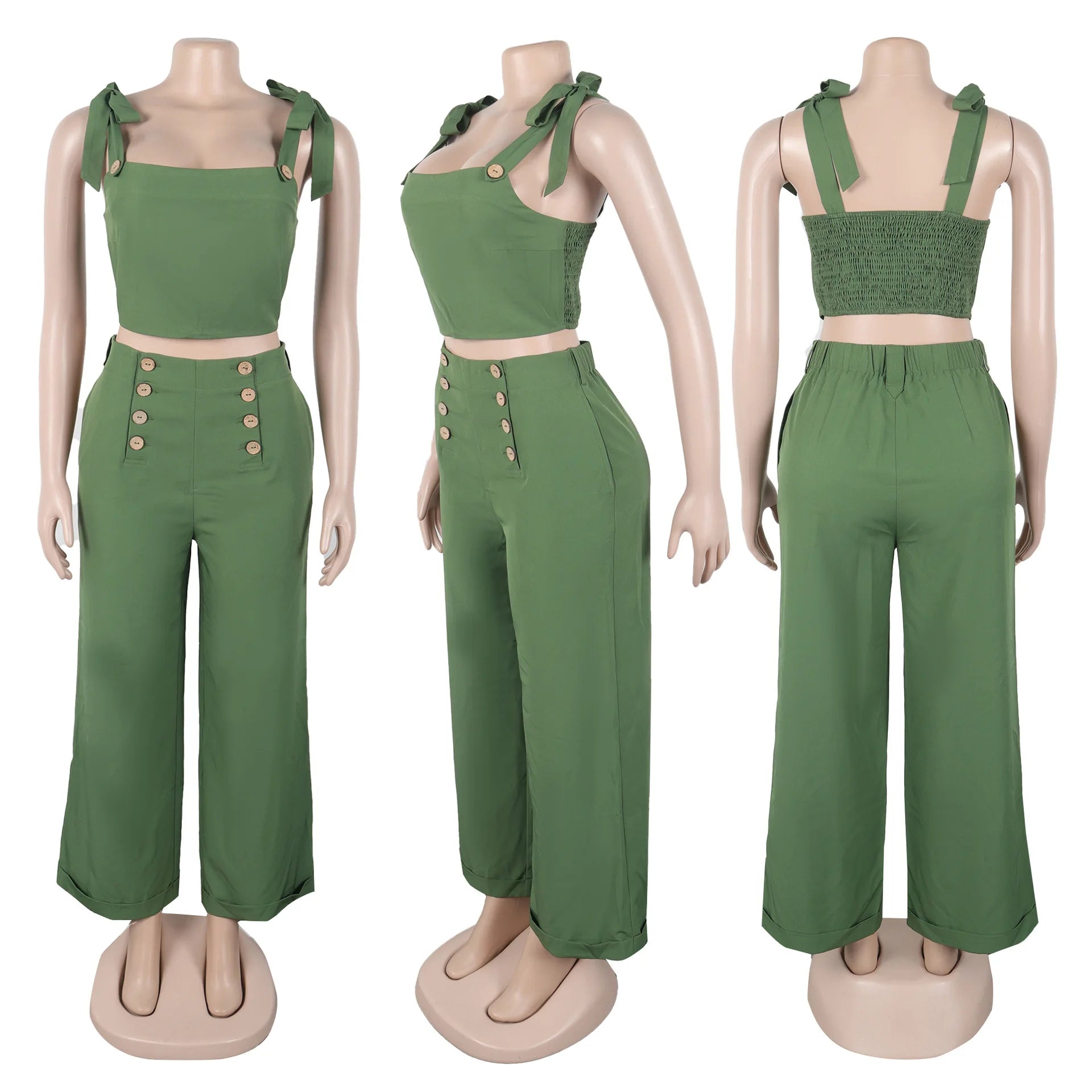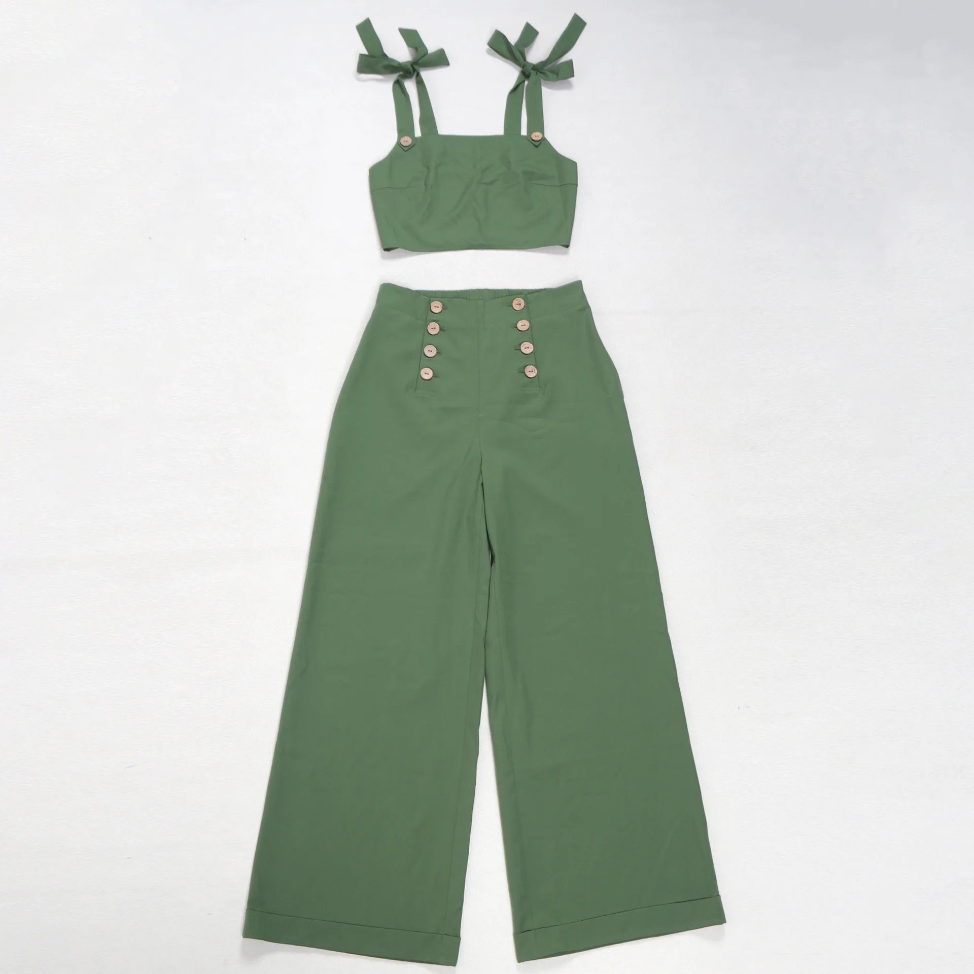 - Two-Piece Set – Slim-fit vest + wide-leg trousers