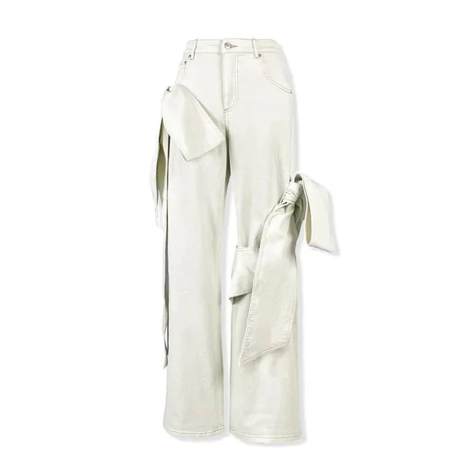 UNIKCOSA 3D Bow Strapless Denim Set — Chic Tube Top & Distressed Wide-Leg Jeans 💙