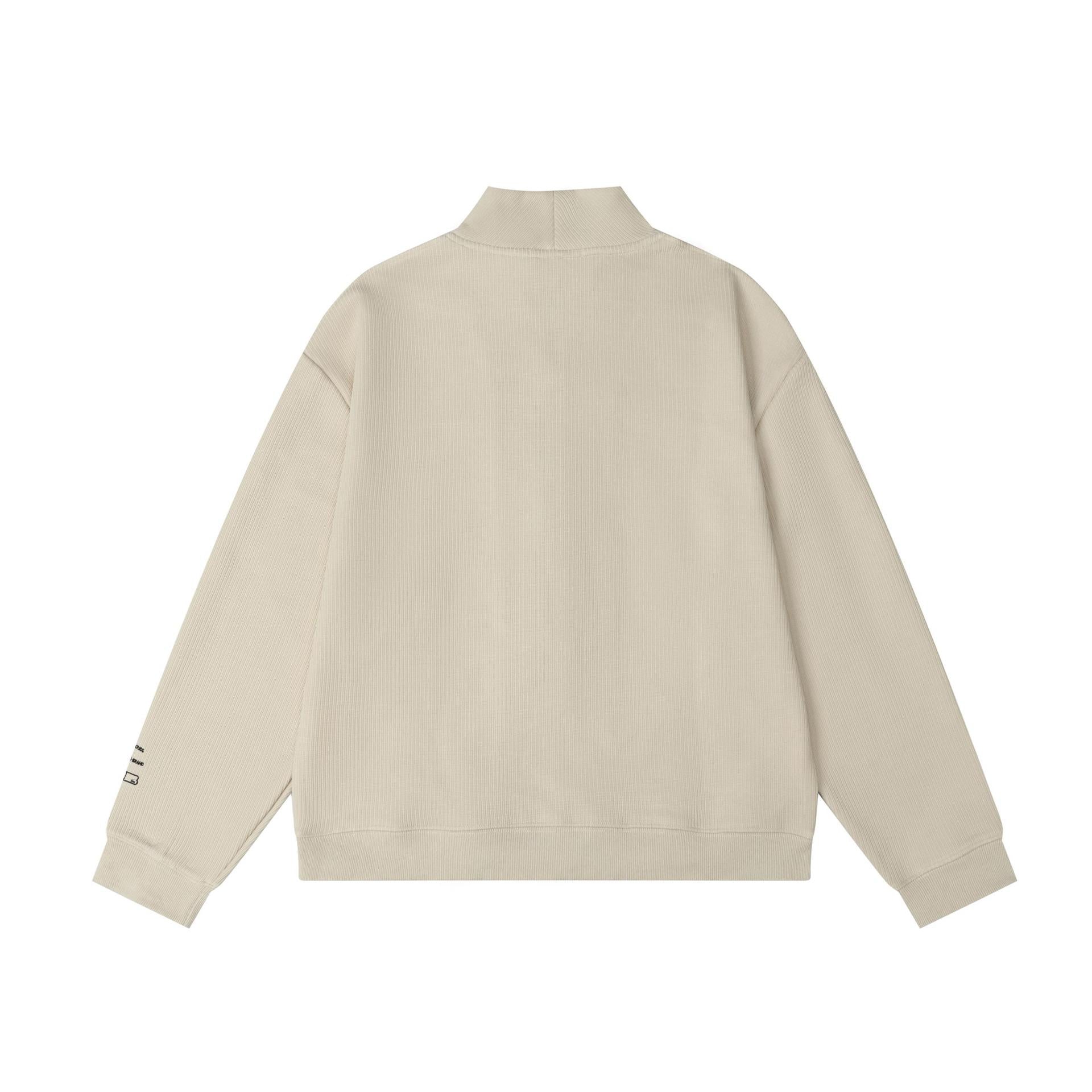 Constructed from a cotton-polyester fleece blend with a soft brushed interior and a durable smooth outer finish. Lightweight yet warm, ideal for autumn and winter layering. Embroidery crafted with premium multi-thread detailing. It settles softly on the shoulders, and the brushed interior whispers at each movement. The multi-thread embroidery retains clarity, giving a premium tactile finish that elevates every outfit.