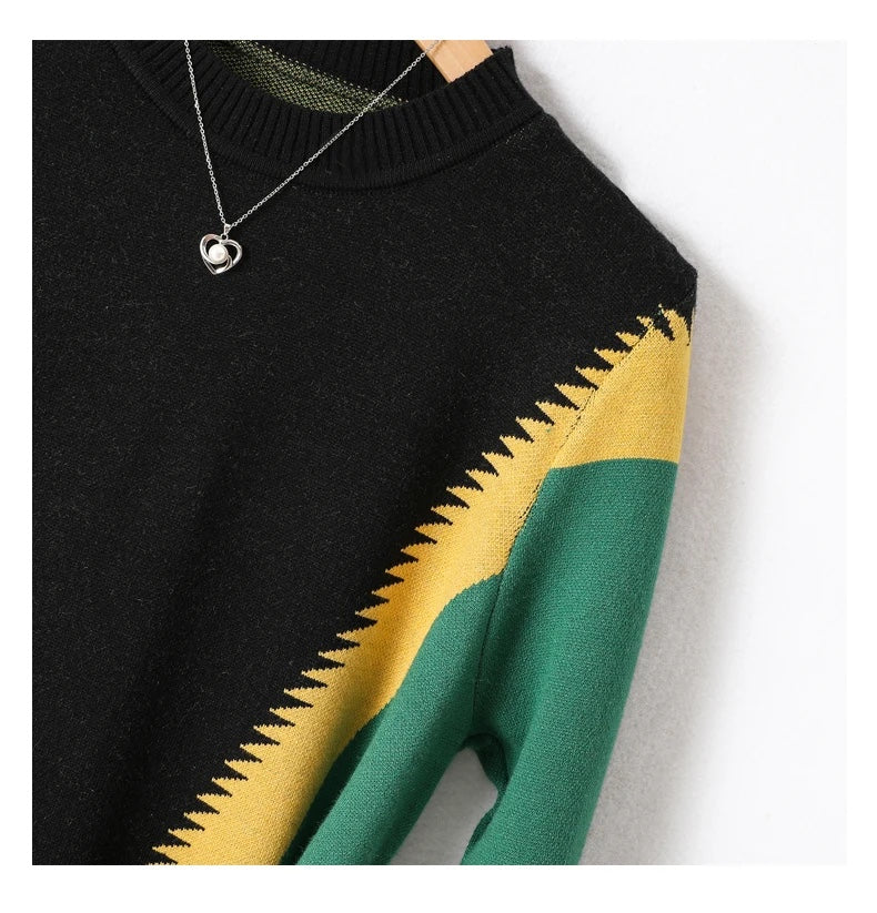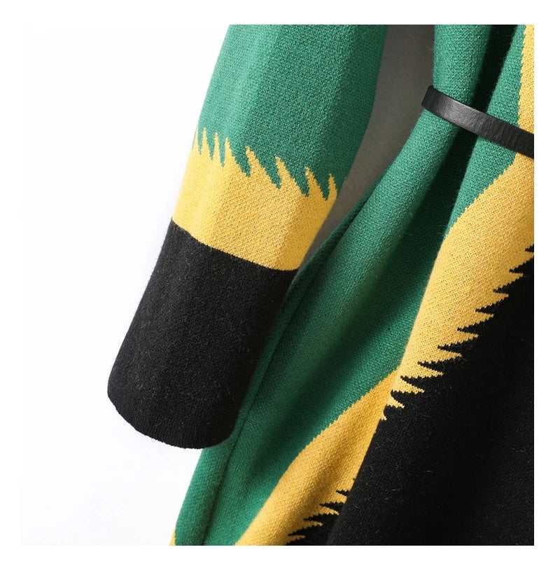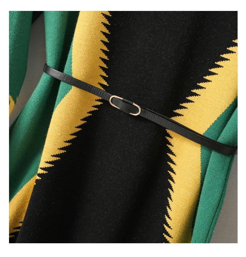 UNIKCOSA LuxeWool Contrast Jacquard Knitted Dress with Belt — Autumn/Winter Edition 🍂