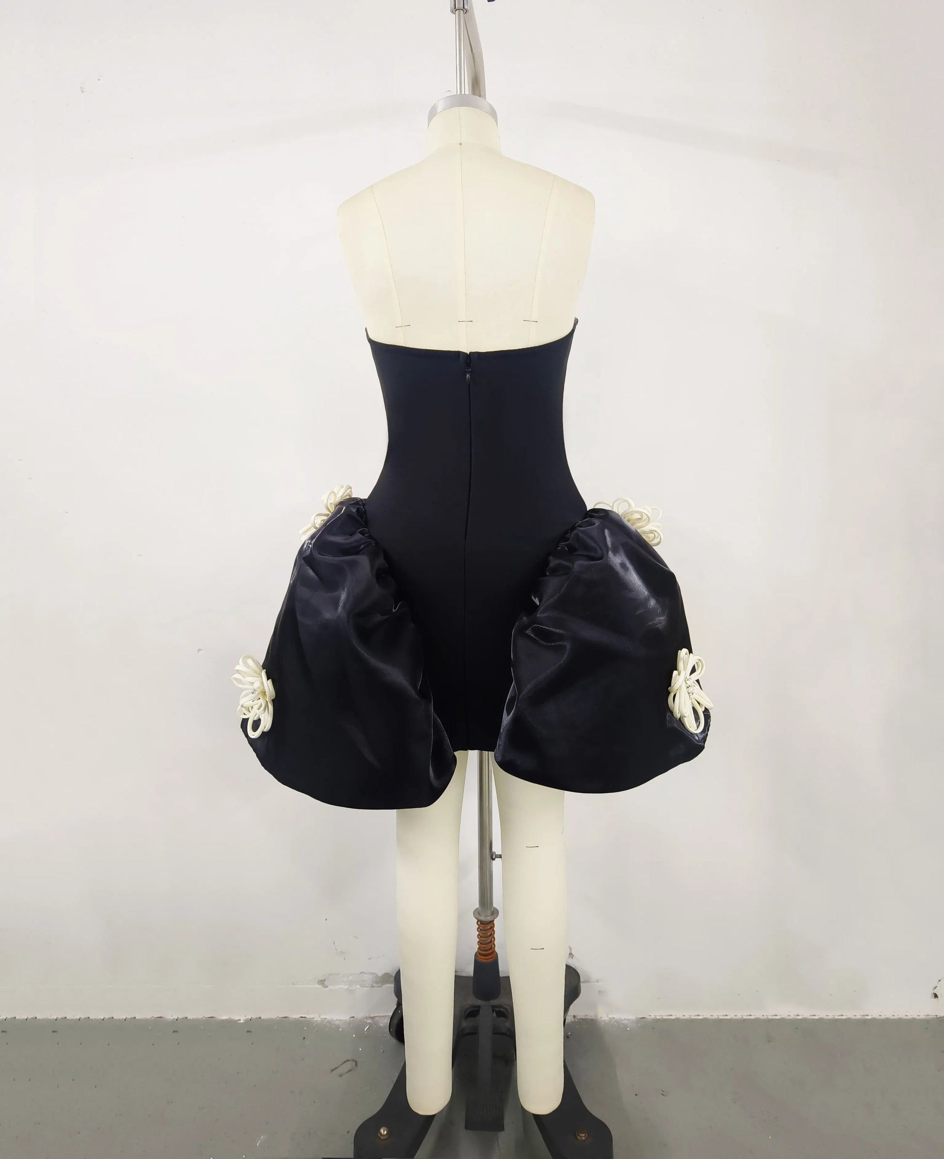 UNIKCOSA Velora Black Floral Strapless Mini Bandage Dress ๐ซ