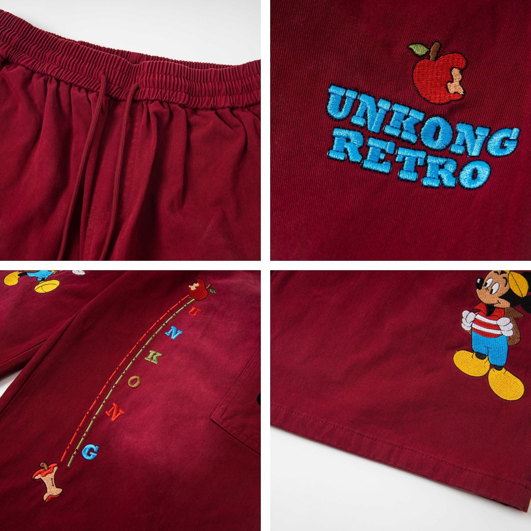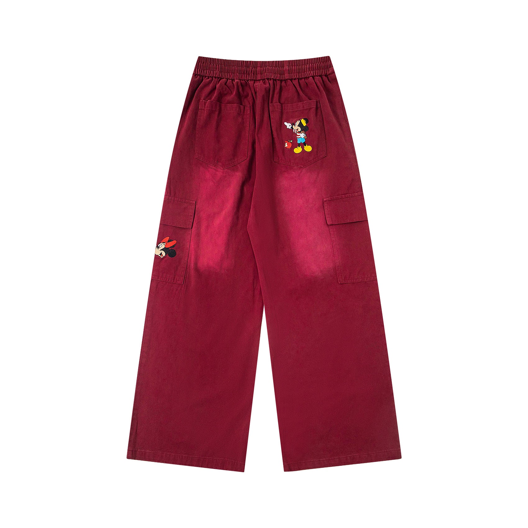 - Wide-leg freedom paired with a distinctive cartoon motif.