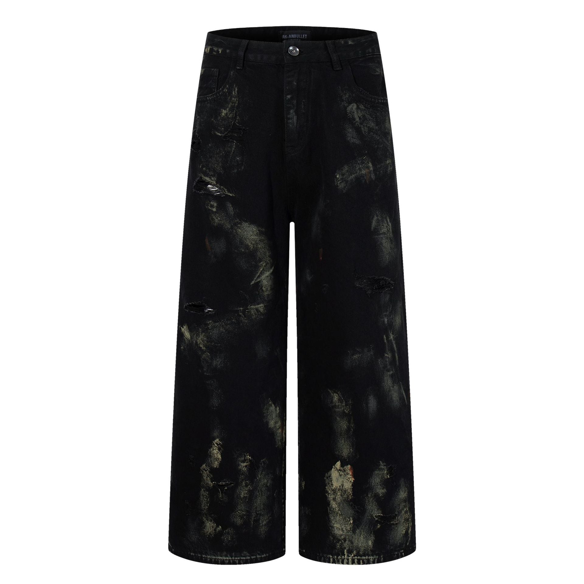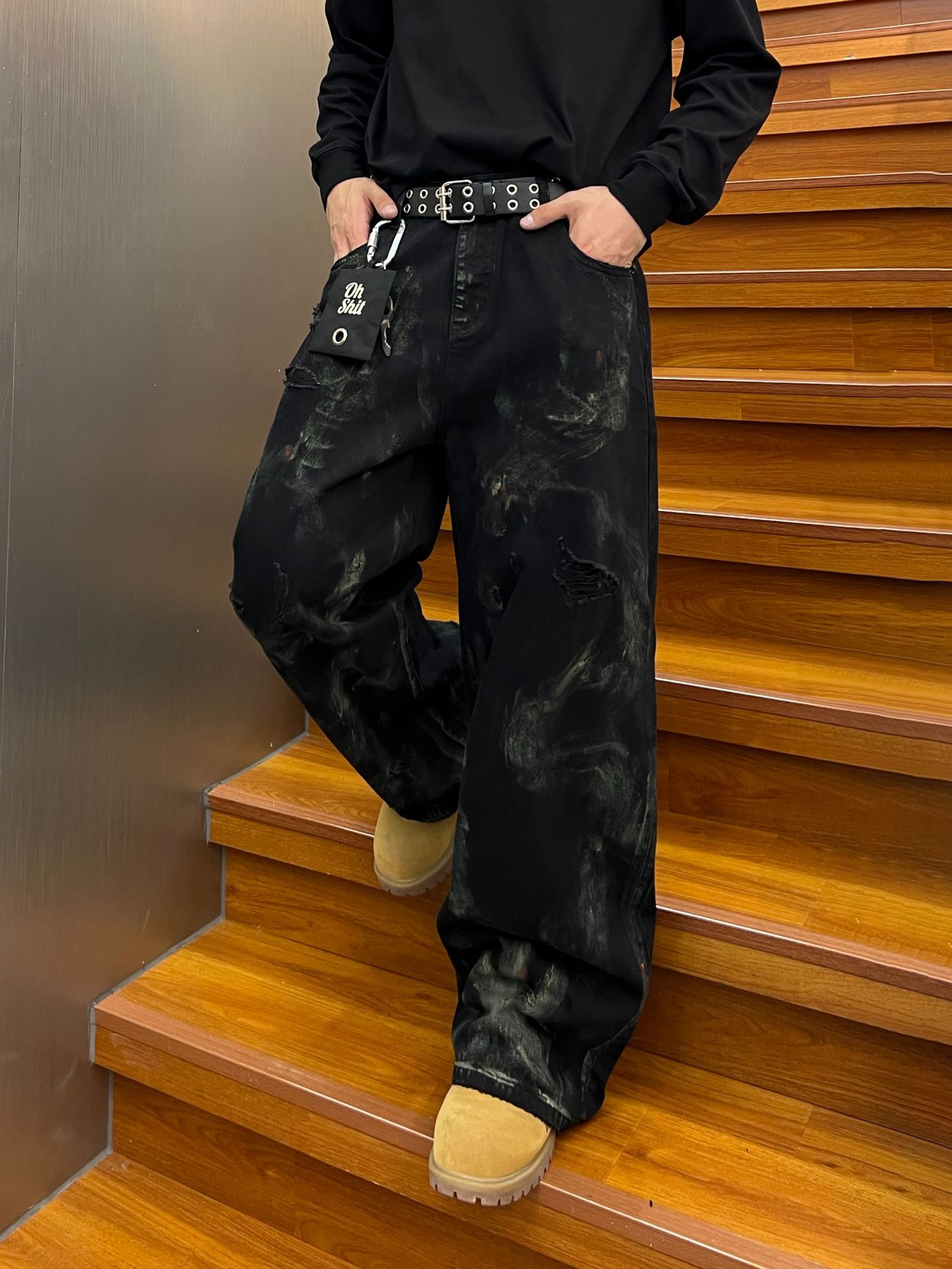 ✨ Crafted from premium washed cotton denim, these loose, wide-leg jeans fuse graffiti-inspired distressing with hand-washed fading for a bold street presence that moves with you.