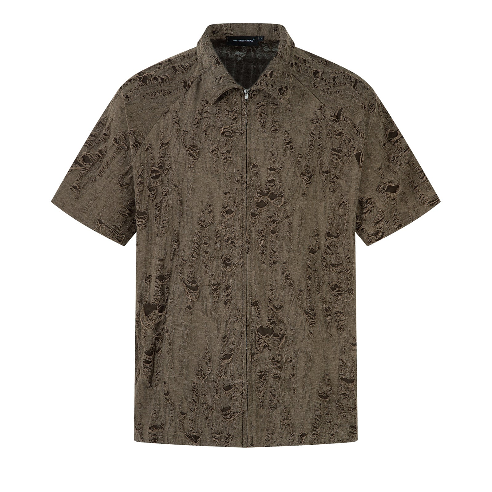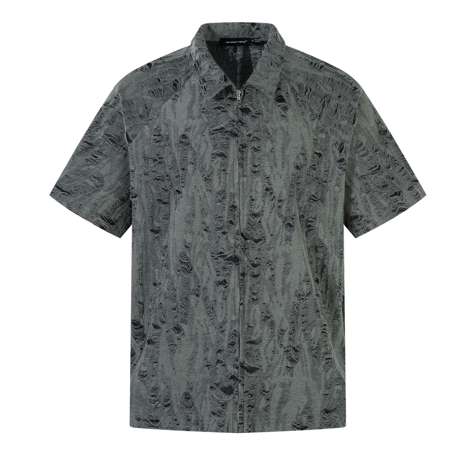 UNIKCOSA UrbanSoul Men's Zipper Ripped Short Sleeve Shirt 🌆