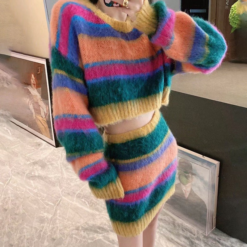 UNIKCOSA ColorMuse Contrast Knit Top & A-Line Skirt Set for Women 🌈