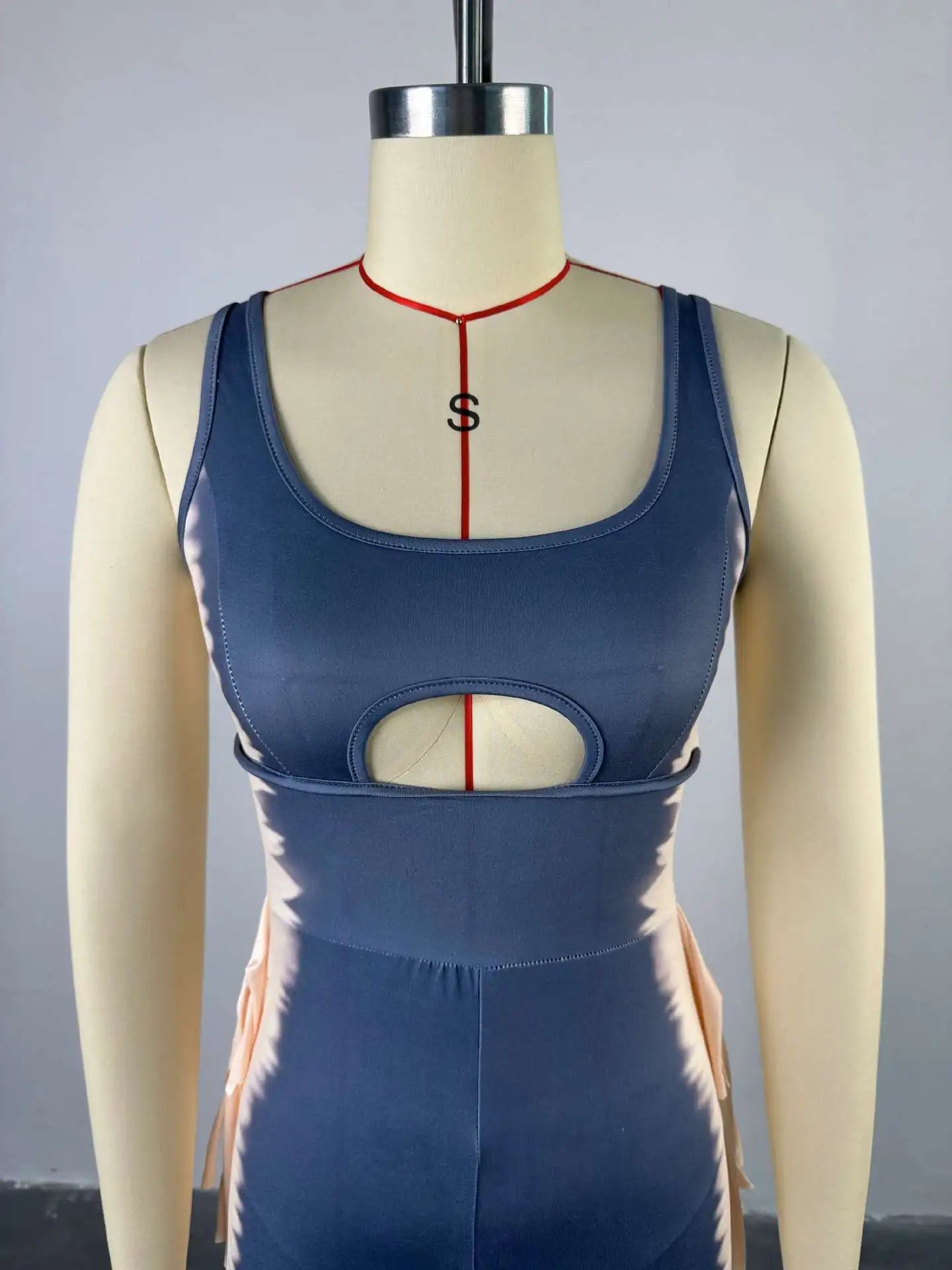 The Velora Flare Leg Jumpsuit with Tassel Detail fuses sexy confidence with effortless elegance.