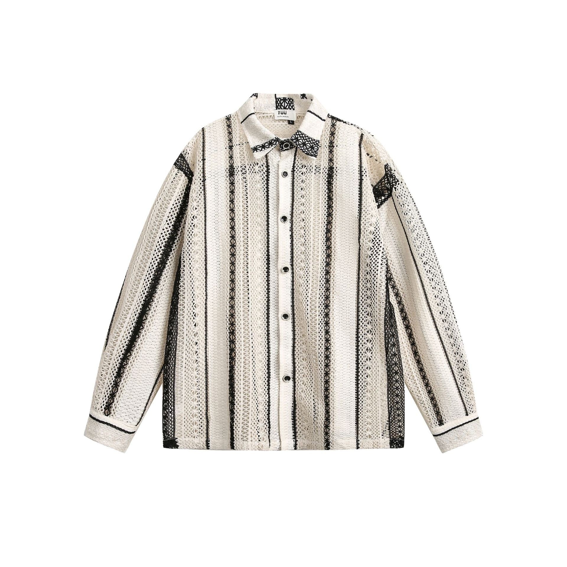 UNIKCOSA LuxeEase Hollow Out Striped Unisex Loose Shirt 🌆