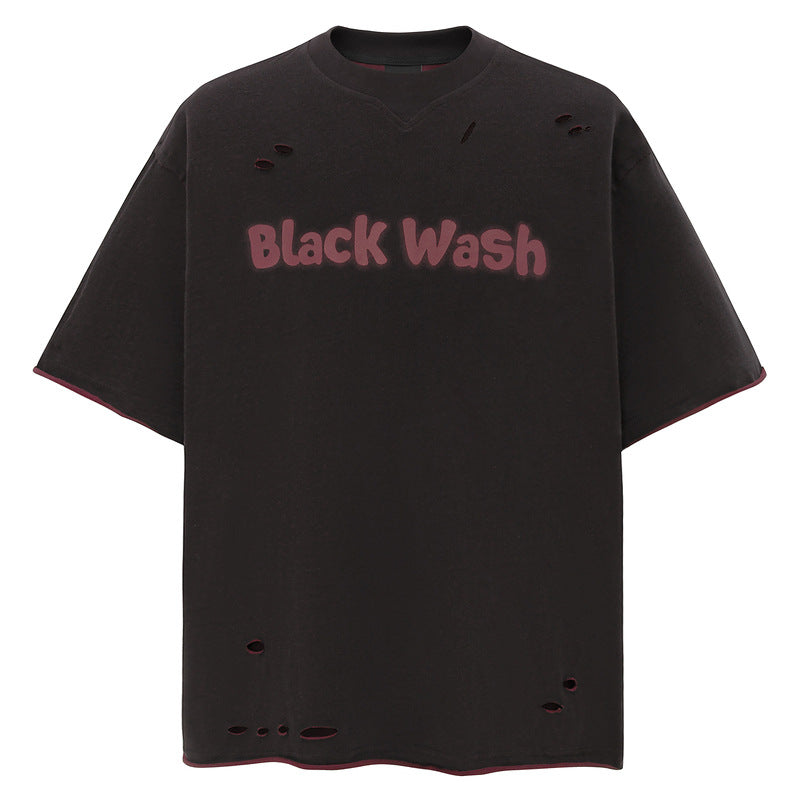 UNIKCOSA LuxeEase Letter Print Ripped Short Sleeve Tee 💫