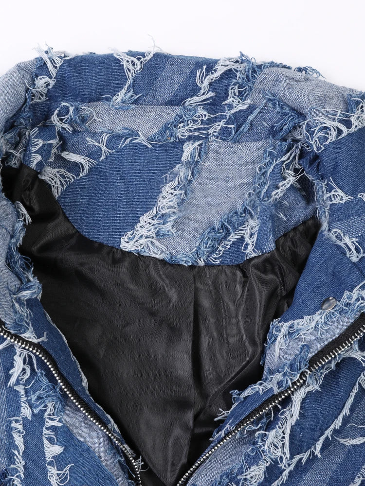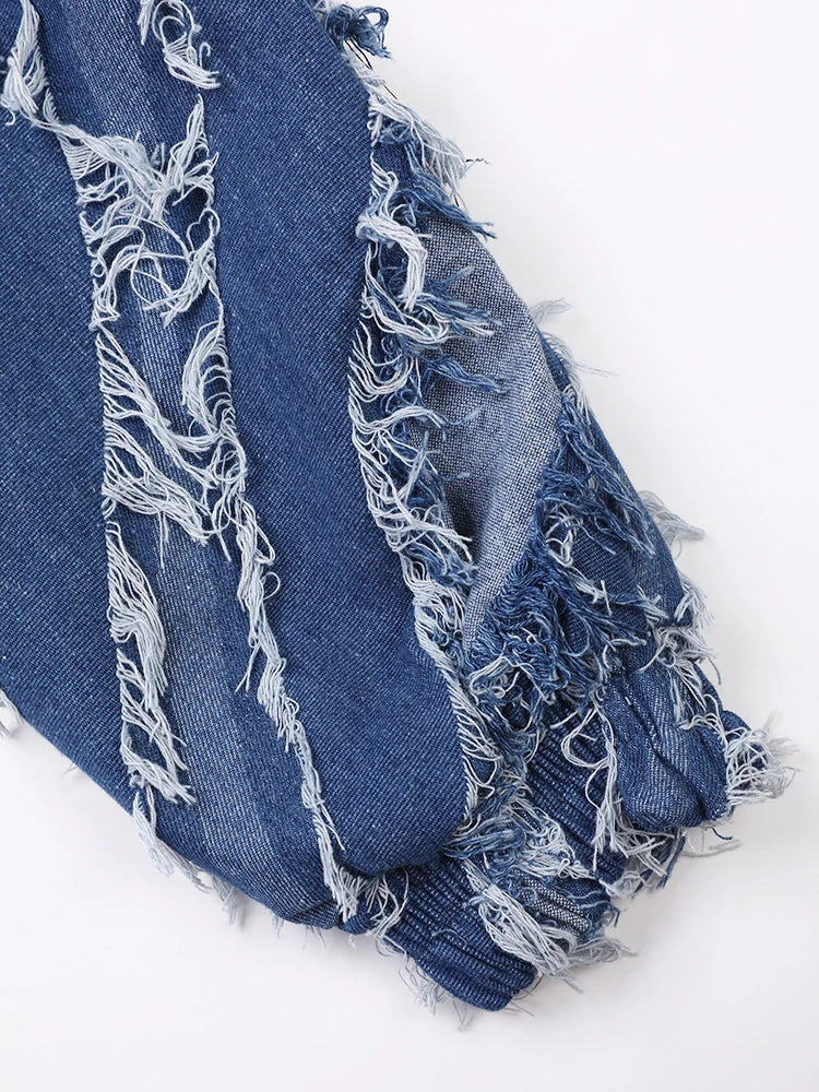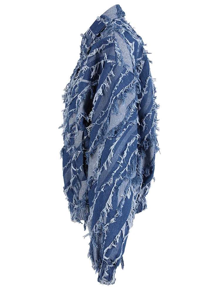UNIKCOSA UrbanSoul Denim Jacket Loose Fit Tassels Big Size 💫