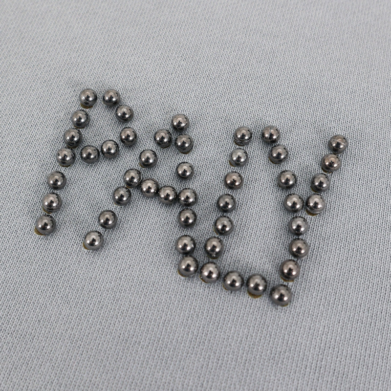 - Distressed beaded accents paired with bold letter pattern for standout texture.