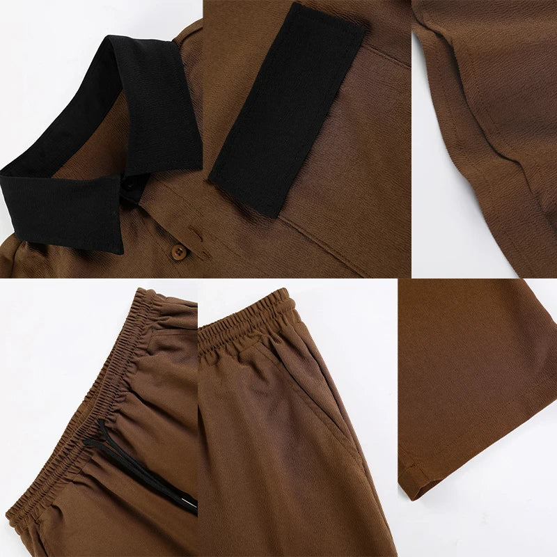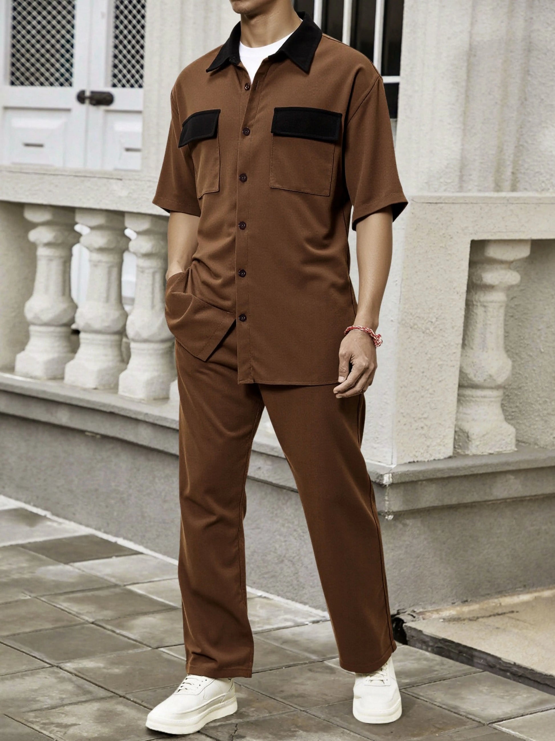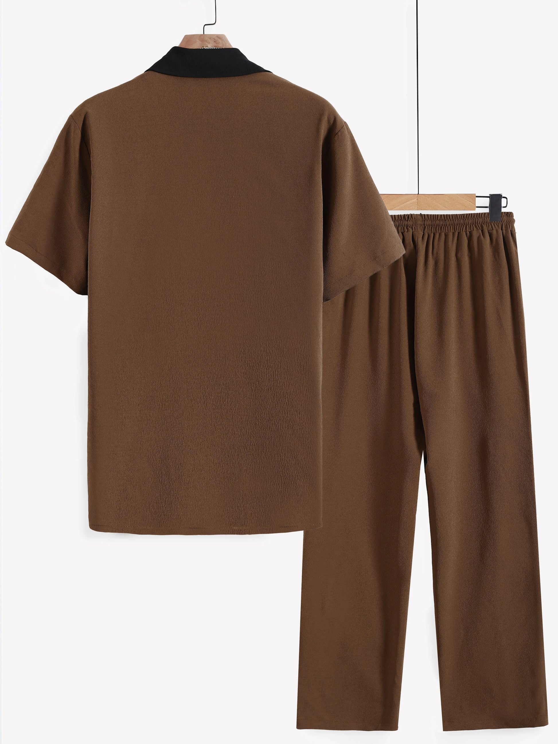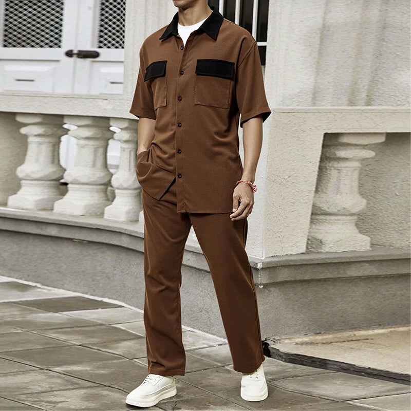 - Two-Piece Set: Short-sleeve colorblock shirt with matching casual trousers for an instant, cohesive look.