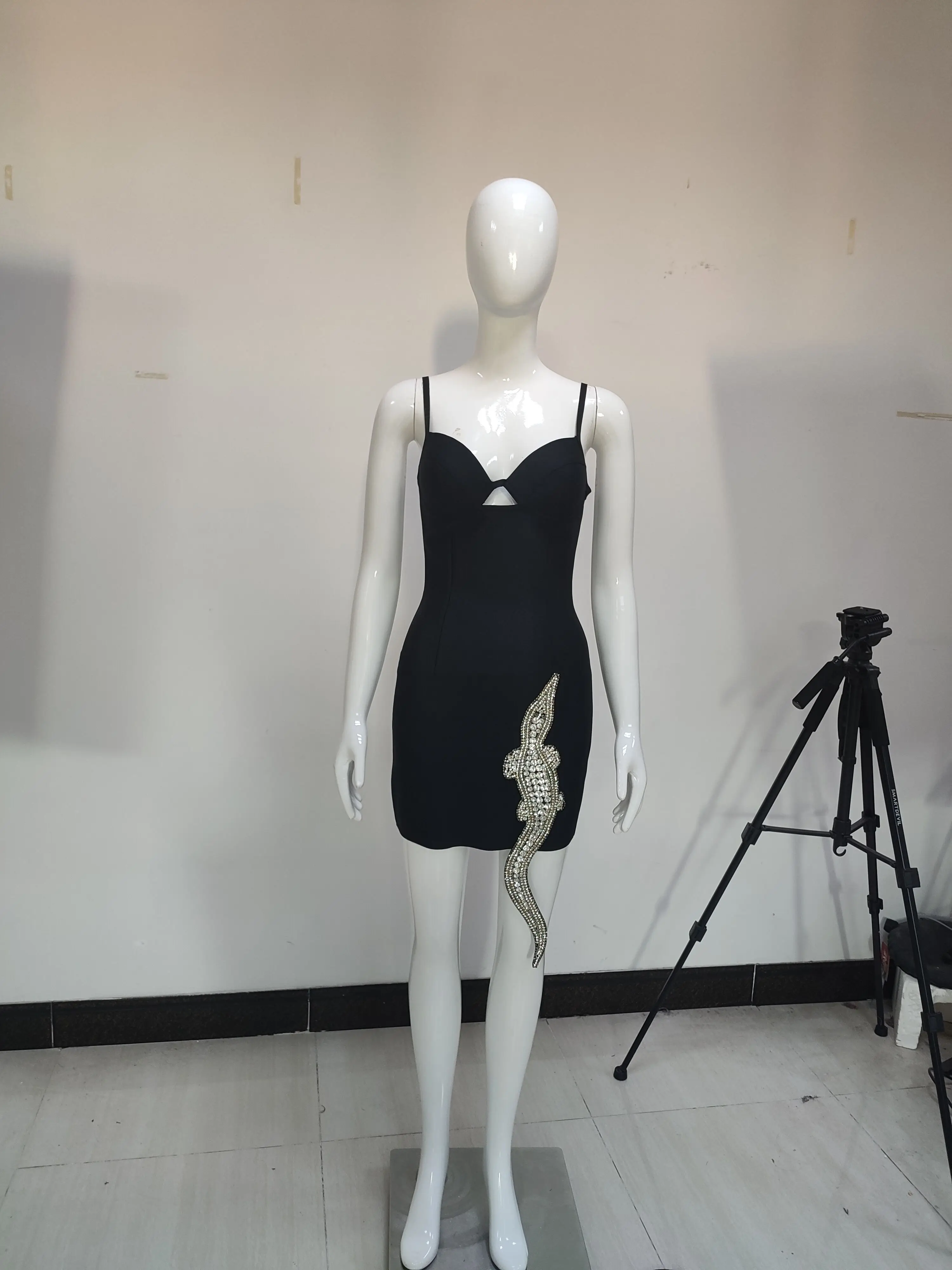 Crafted from polyester fiber, Velora offers a smooth, slightly glossy surface with a soft hand. The high-stretch bandage texture provides structured drape without compromising comfort, ensuring a sculpted, second-skin feel as you move through the night.