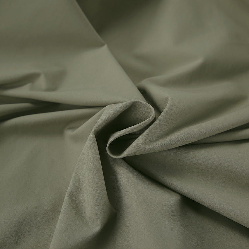 Fabric: premium polyester with a smooth, breathable texture. The touch is soft yet substantial, offering a comfortable drape. Lightweight but durable, the fabric provides gentle stretch for ease in motion—ideal for transitional weather.
