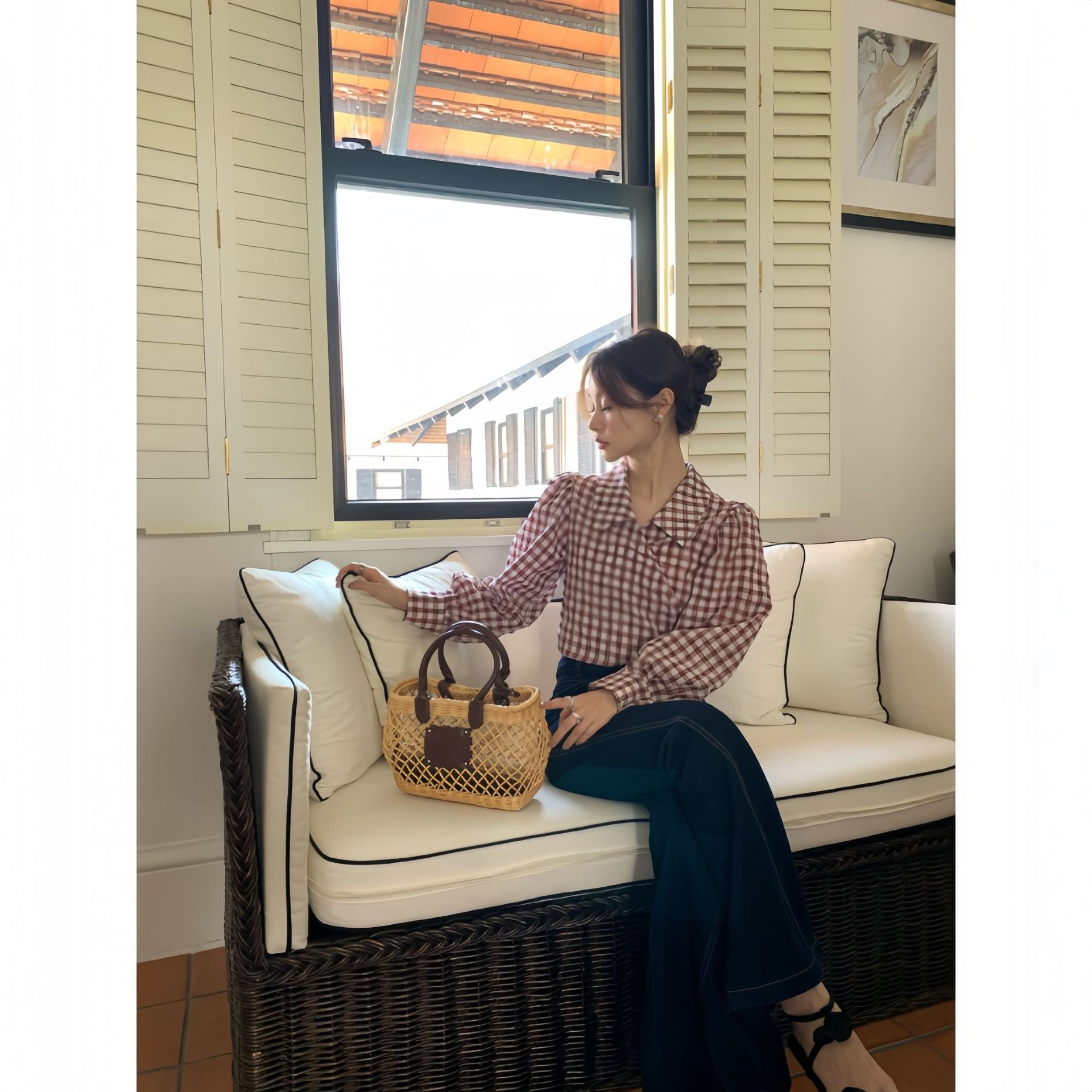 UNIKCOSA RetroMuse Slim Fit Bubble Sleeve Checkered Shirt π«