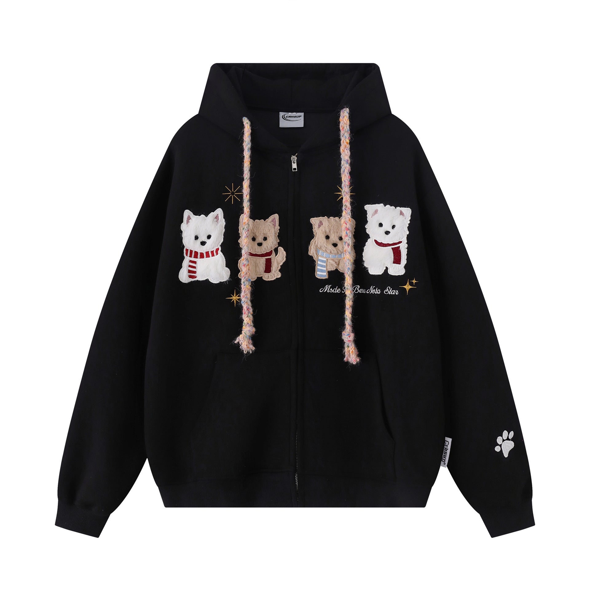 UNIKCOSA RetroMuse Hooded Cardigan Dog Flocking Unisex 💫