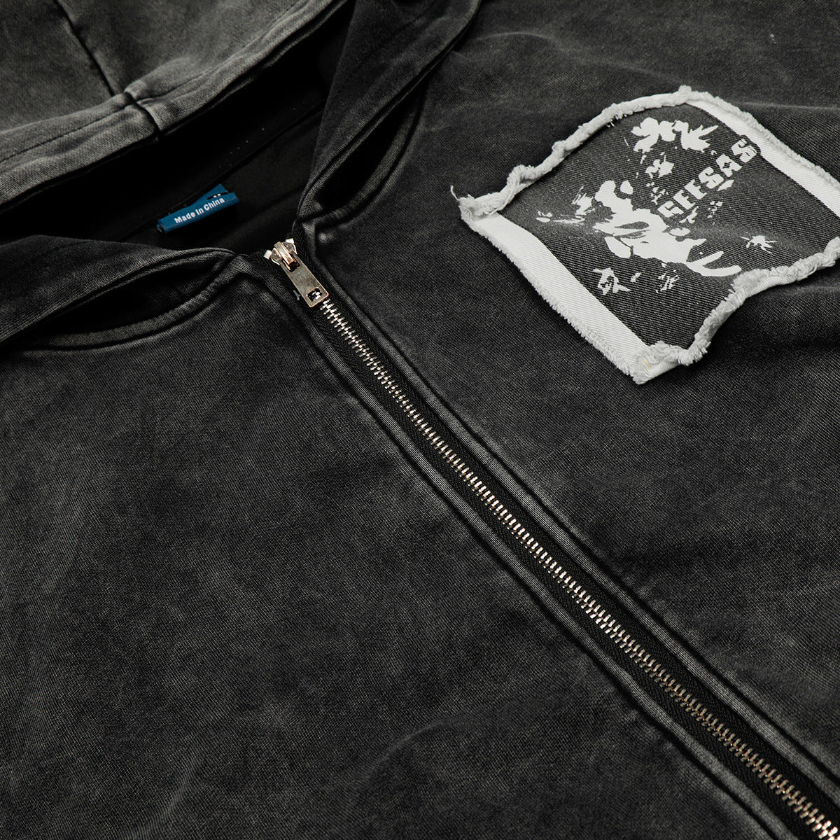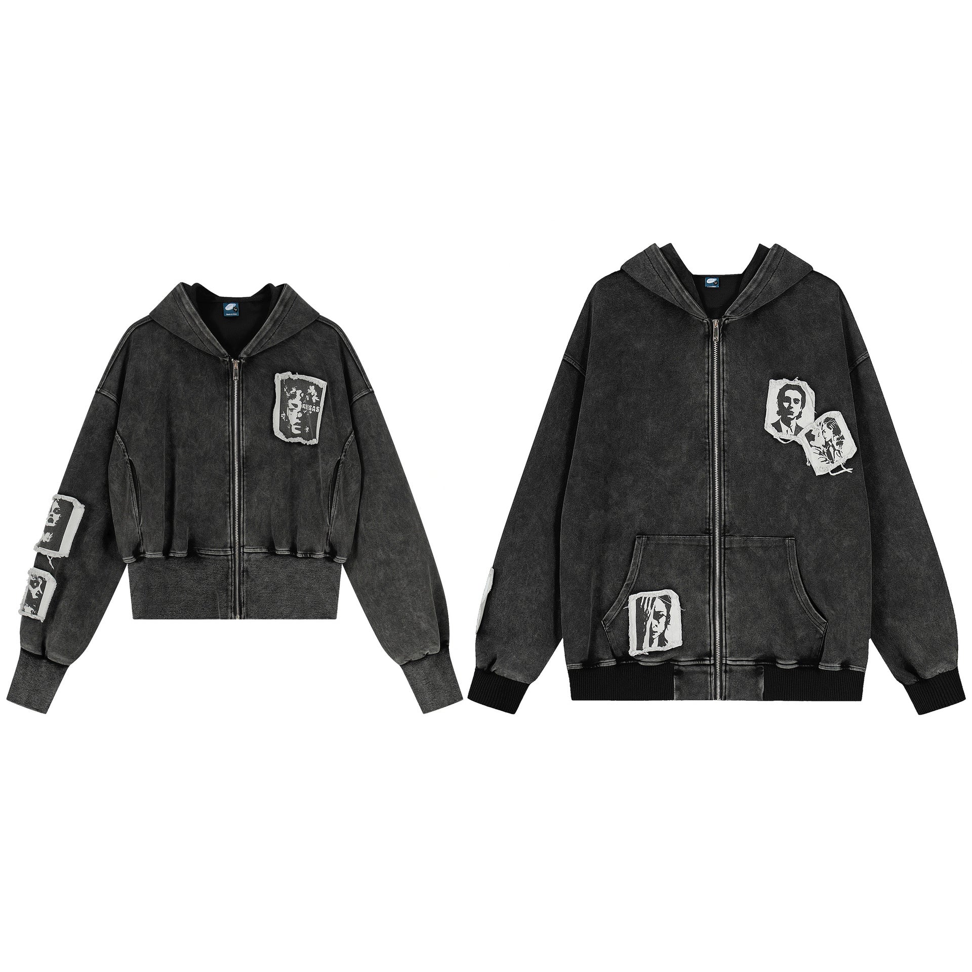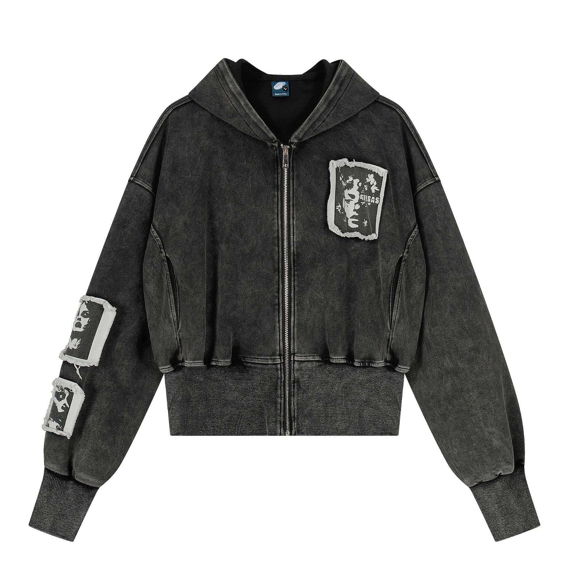 - Short jacket silhouette with vintage zip hoodie design