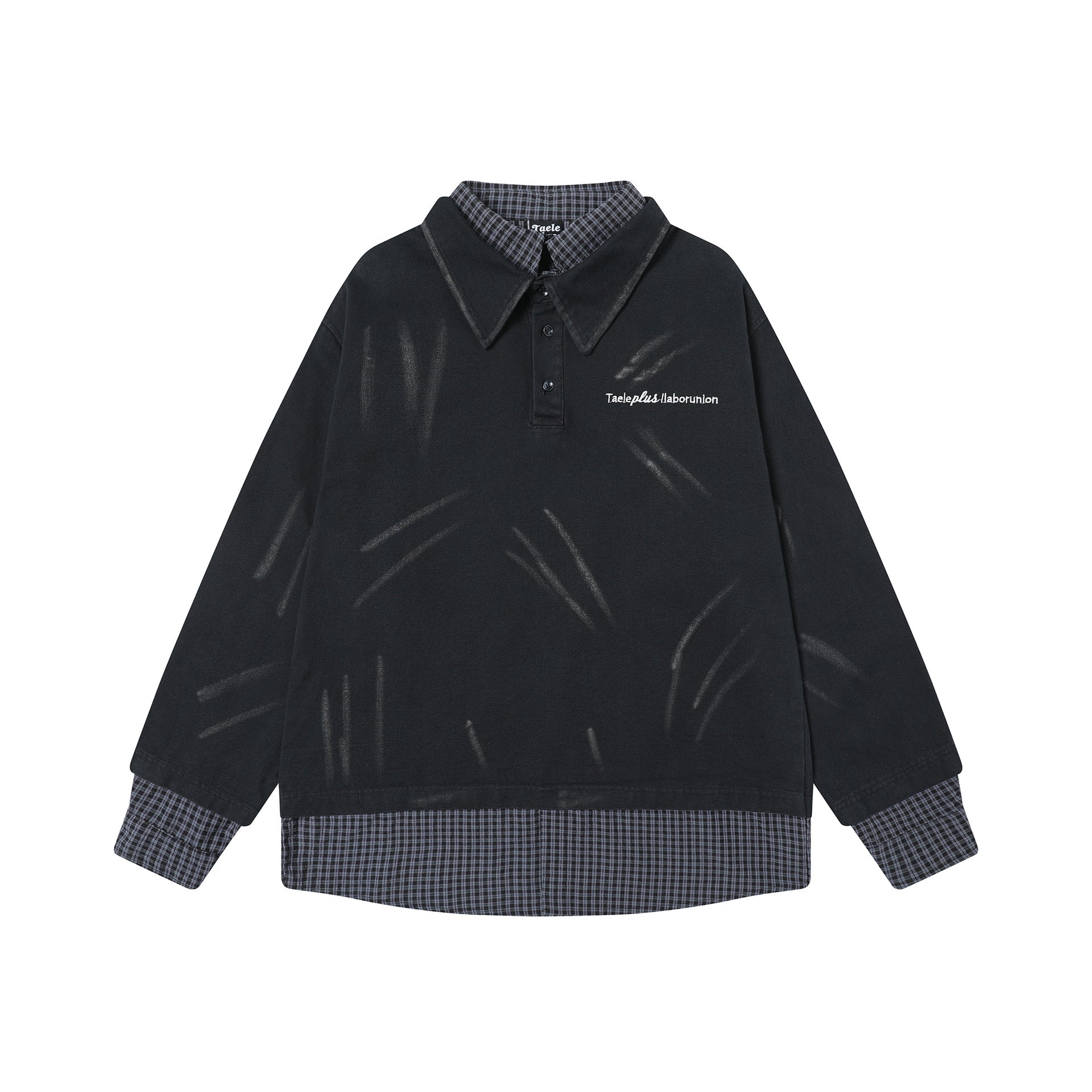 UNIKCOSA Velora Lapel T Shirt Retro Washed Black Tee 💫