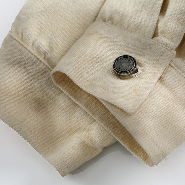 The exact fabric composition isn’t disclosed, but the jacket is built as a fashion-forward patchwork piece with tactile depth. The contrast between panels creates a tactile visual texture that reads premium, while the light khaki base anchors the bold graffiti elements for versatile wear across ensembles.