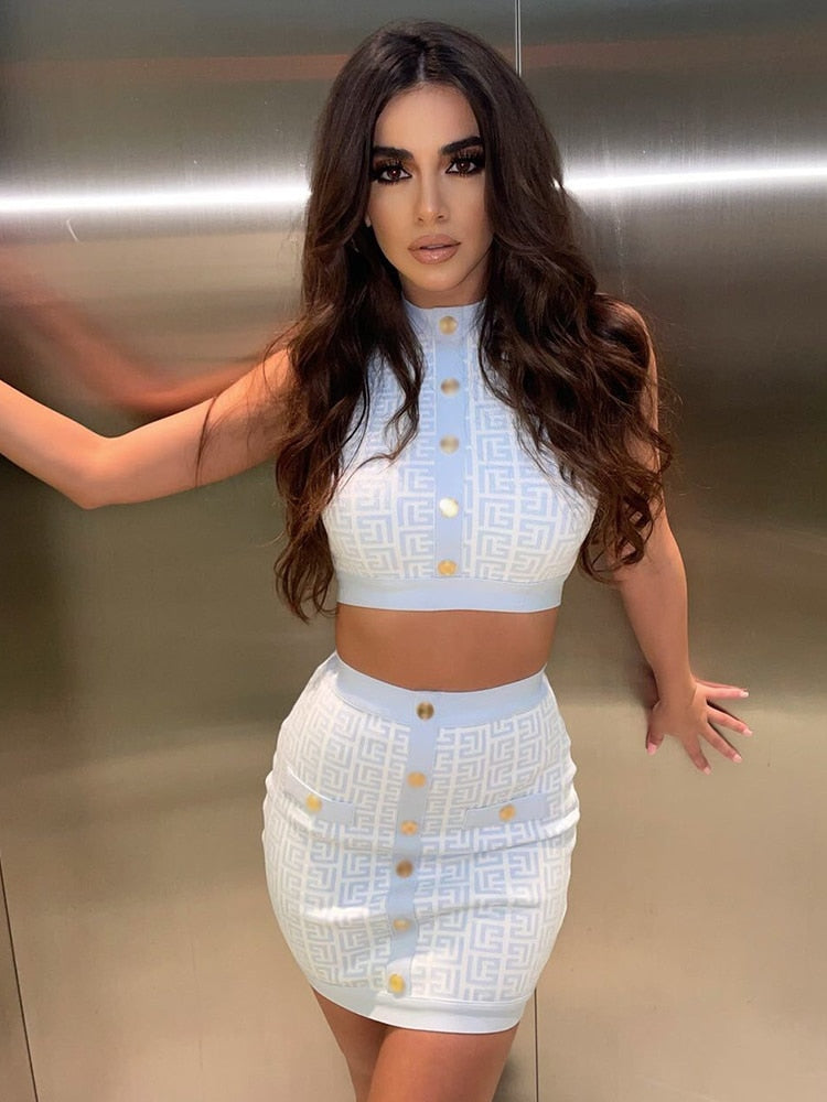 Crafted from polyester fiber with a touch of Spandex, the set balances structure and stretch. The jacquard surface feels smooth to the touch, with a refined, lightweight drape that holds its shape through movement.