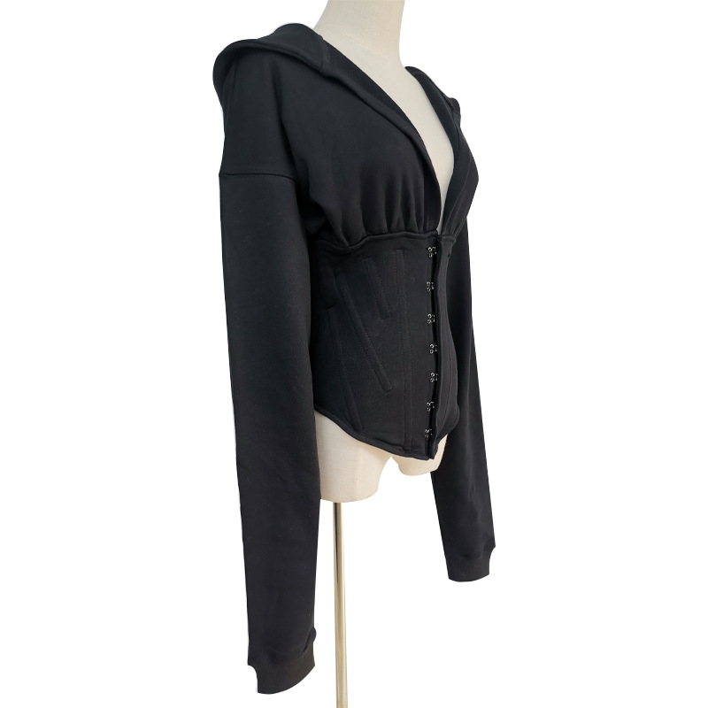 Velora Slim Hooded Knit Sweater in black commands the street with quiet luxury. A refined cardigan silhouette built for effortless layering and bold, understated style.