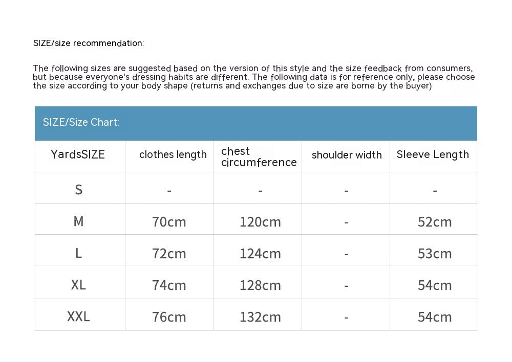 - Sizes: M, L, XL, XXL