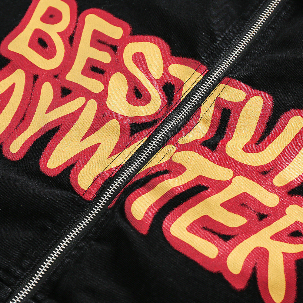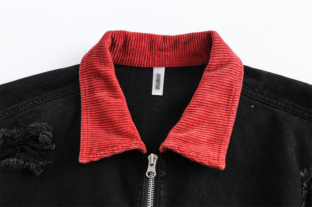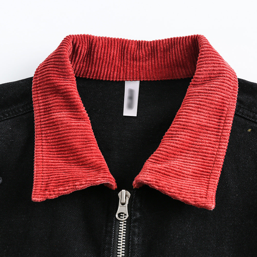 UNIKCOSA NoirFit Denim Jacket With Polo Collar Lettering 💫