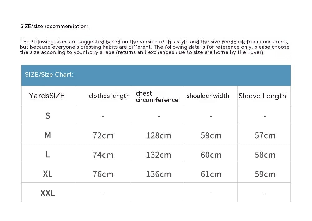 Note: Asian sizes run 1–2 sizes smaller than European and American brands; choose the larger size if between two. Please allow 2–3 cm differences due to manual measurement. Check the size chart before you buy.