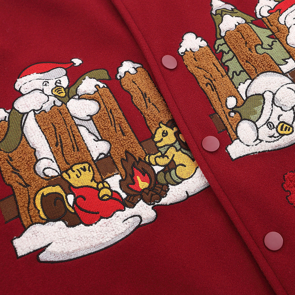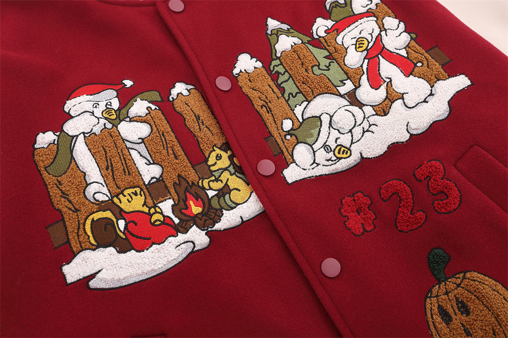 UNIKCOSA UrbanSoul Embroidered Street Jacket Red Autumn 💫