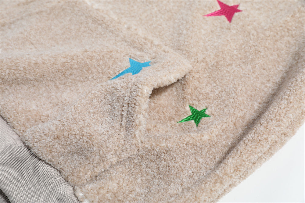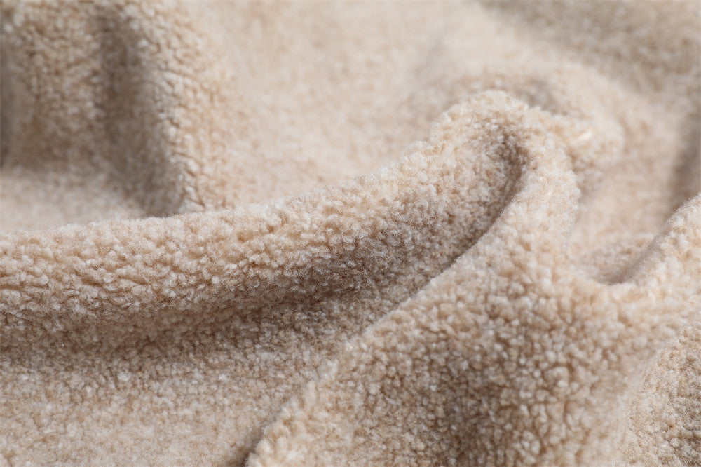 Fabric: 100% Polyester Fiber (lamb-wool style). Thickened, soft, insulating, durable, wrinkle-resistant, and easy-care for everyday wear.