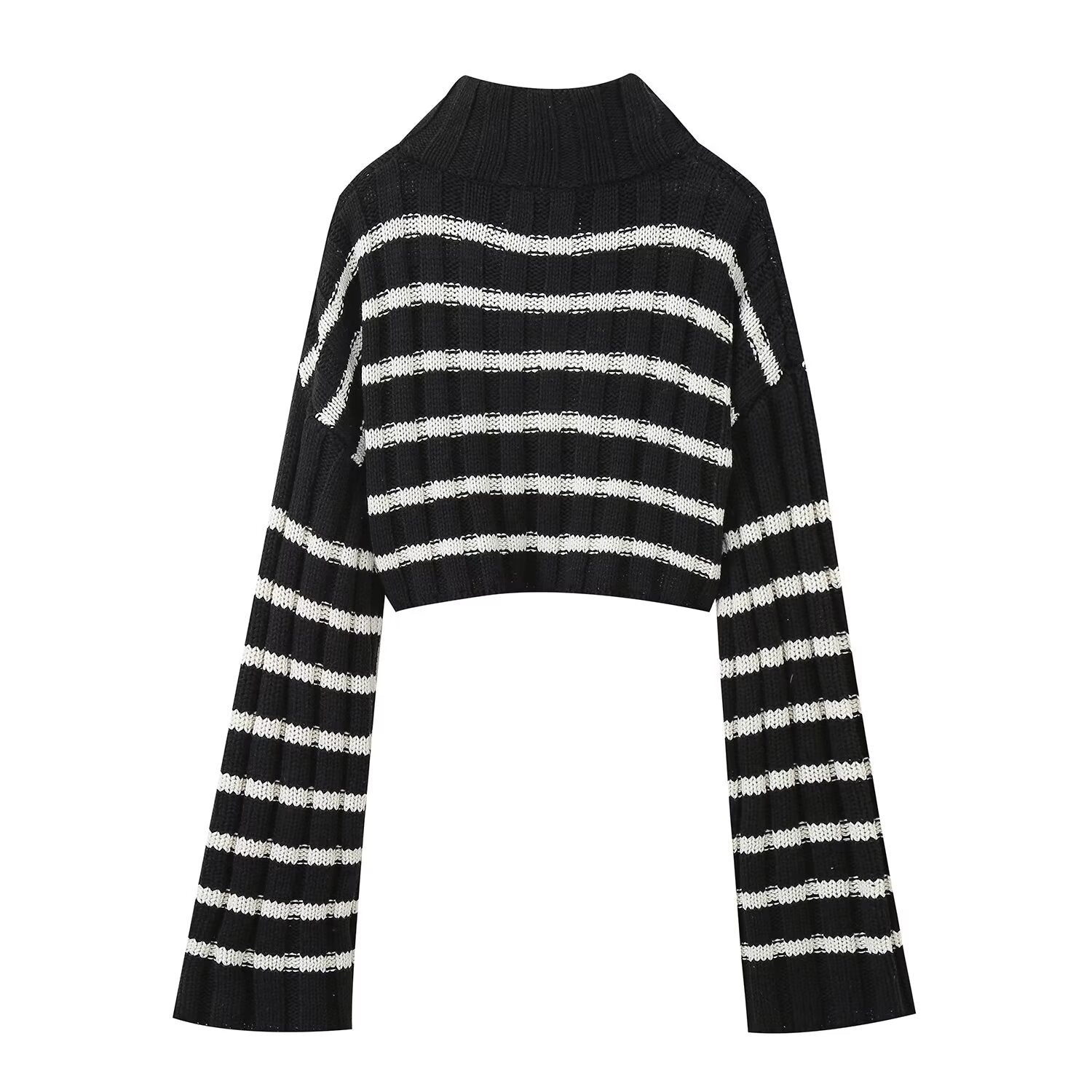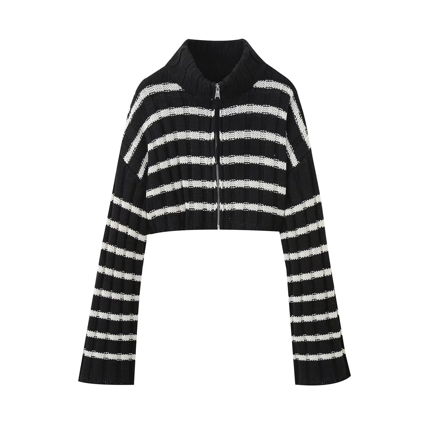 UNIKCOSA StripeLuxe Short Knitted Zipper Cardigan