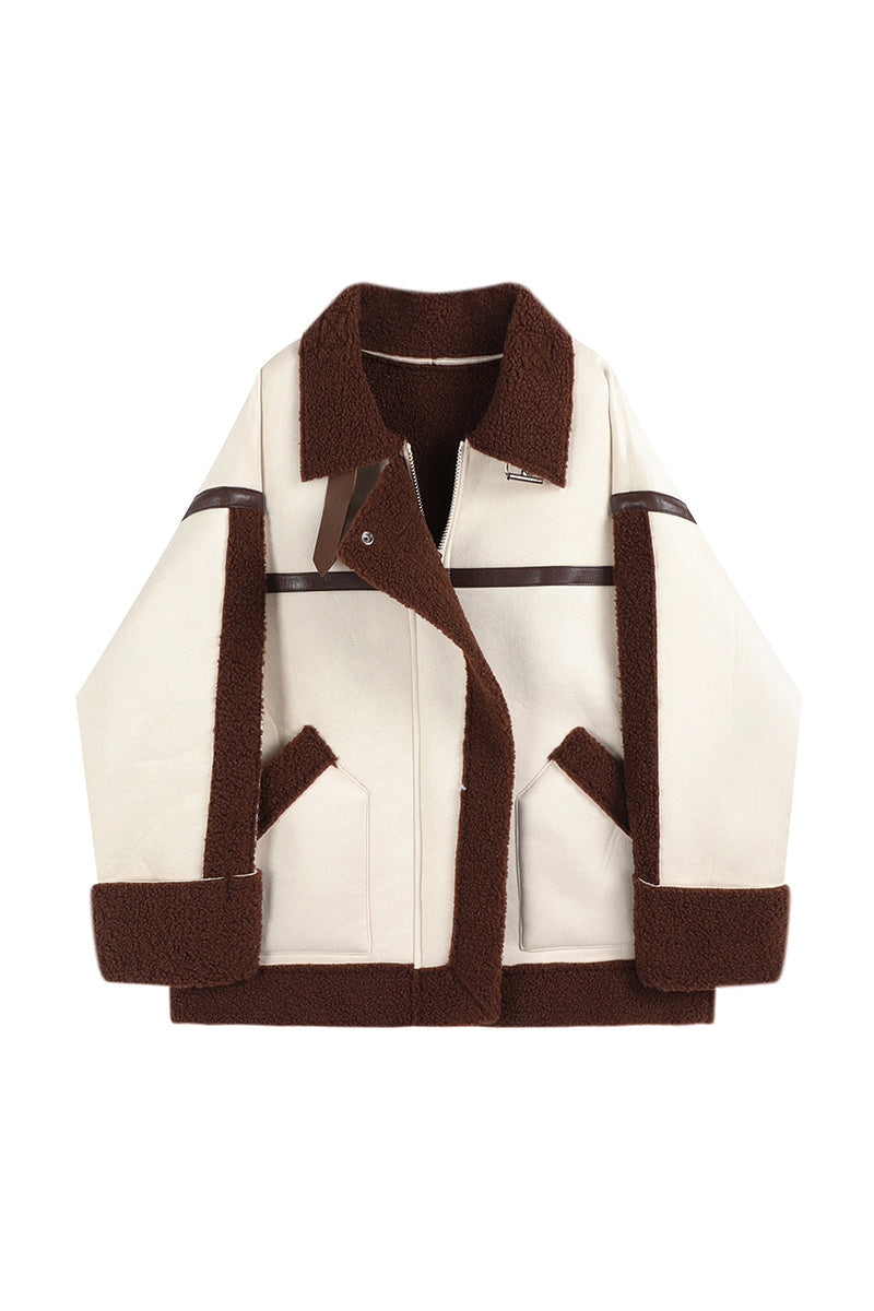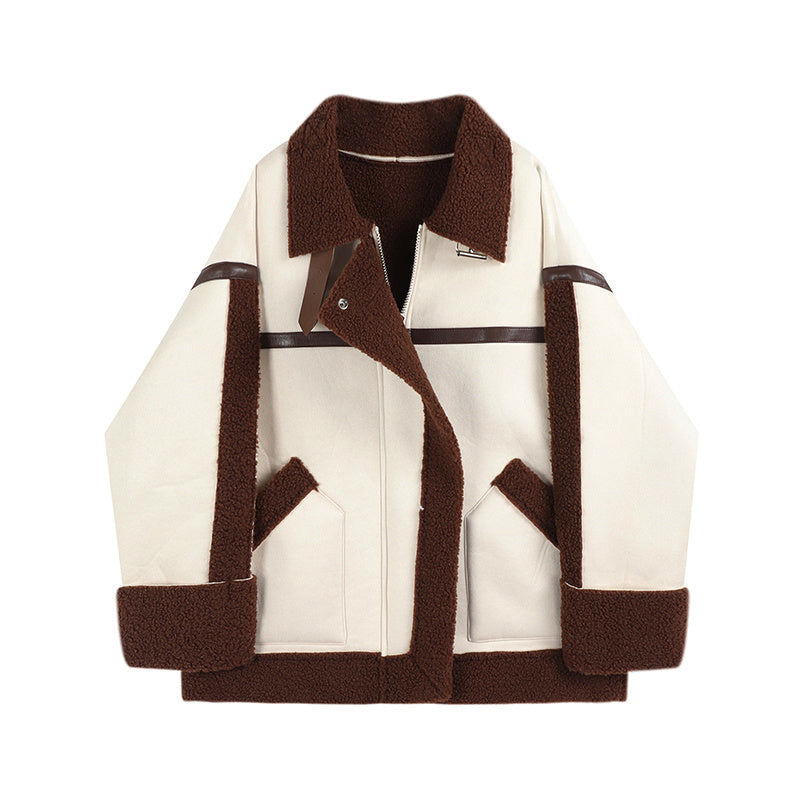UNIKCOSA RetroMuse Lamb Hair Coat Fur Jacket Spliced 💫