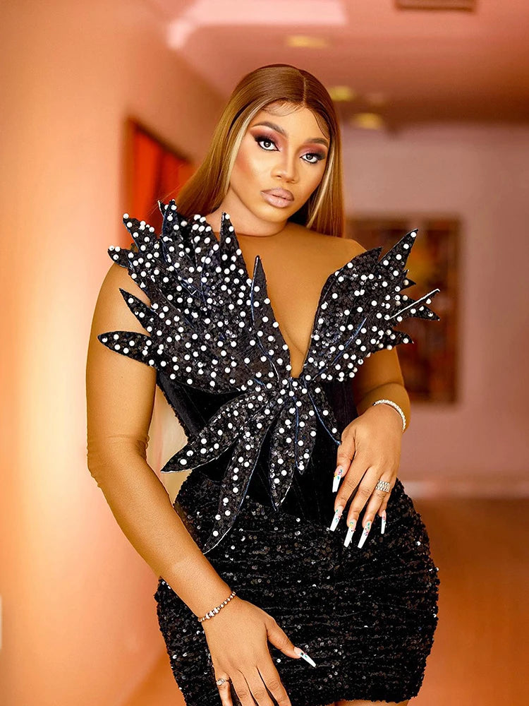 The Velora Mini Dress is cut for a sleek, figure-hugging silhouette with a short hem for drama. Available in US sizes XS–L; please refer to the size chart for bust, waist, and hip ranges to ensure the perfect fit. Ideal for fall and winter events when velvet shines under evening lighting.