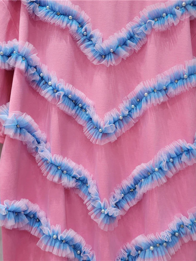 UNIKCOSA CrystalFlair Rhinestone Mesh Ruffle T-Shirt for Women ✨